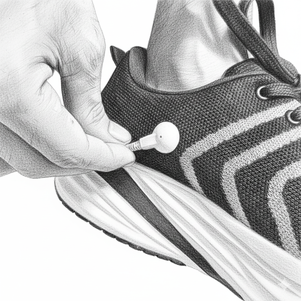 Insert the two pins into the shoe ports as shown in the image.
